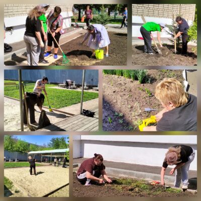 Наши педагоги и воспитанники, вооружившись хорошим настроением, садовым и уборочным инвентарем, на прошедшей неделе весело и дружно приводили в порядок территорию детского сада. Впереди еще много планов по благоустройству территории учреждения и близлежащей территории.