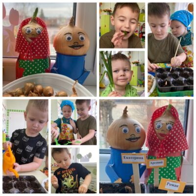 В землицу посадили, разрыхлили водичкой полили. Будут теперь внучата – Лучата подрастать, да детишек витаминами почивать! В благодарность дед Лука и бабушка Лукерья наших ребят угостили зеленым лучком.