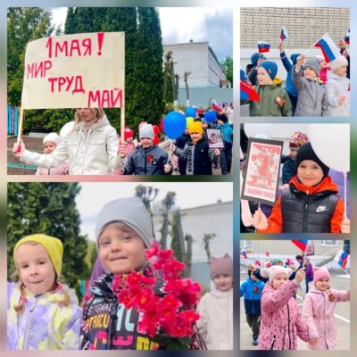 Знакомясь с историей праздника «Первомай», детей подготовительных к школе групп очень заинтересовало такое событие, как демонстрация. Ребята захотели сами устроить праздничное шествие, как их бабушки и дедушки, к которому основательно подготовились: написали транспаранты, выучили лозунги, надули воздушные шары, вооружились флажками.